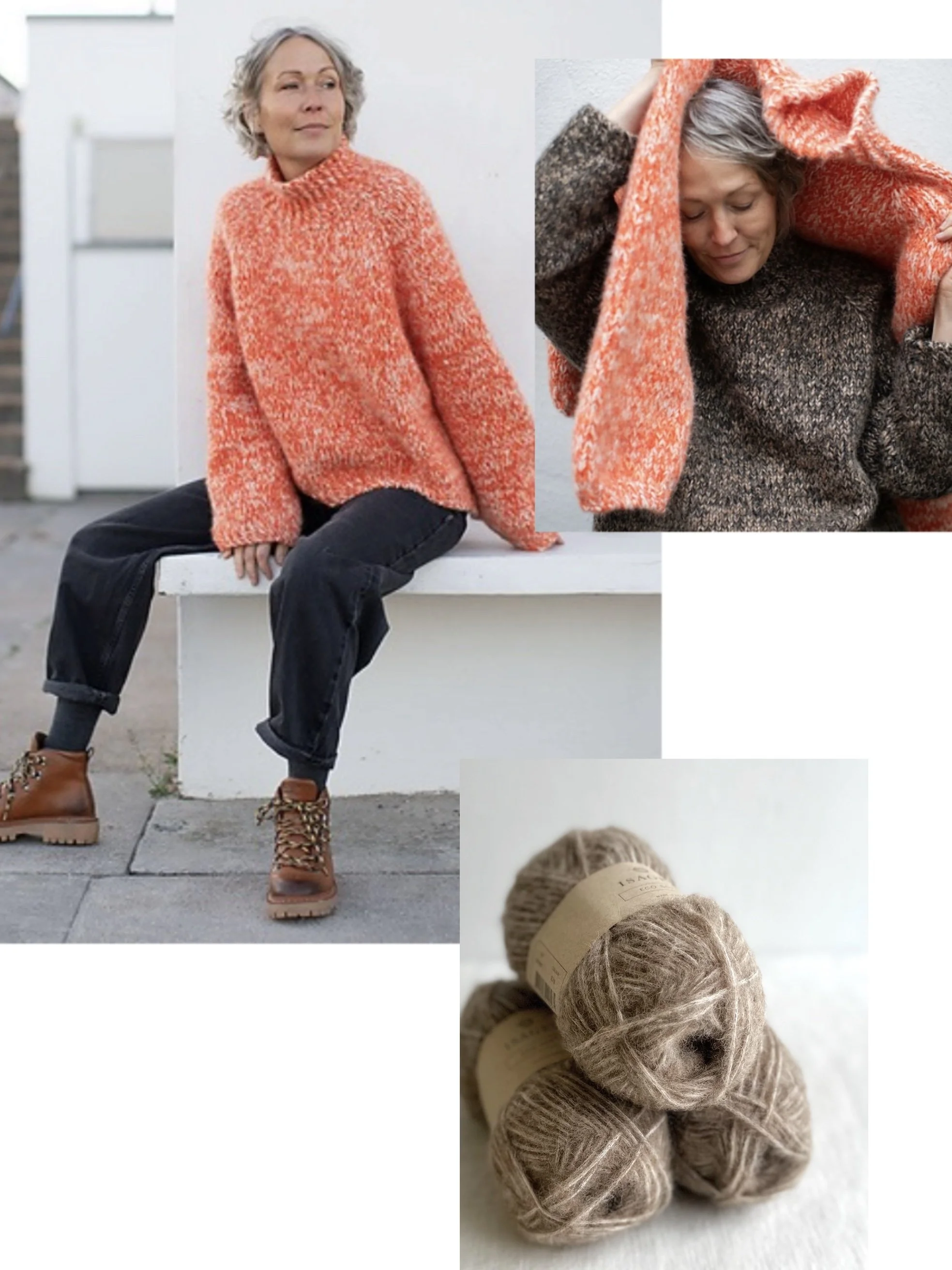 This is a beautiful heavyweight sweater, perfect for the wintery months. the marl effect is made by knitting several yarns together and means you can have lots of fun with color combinations too.
