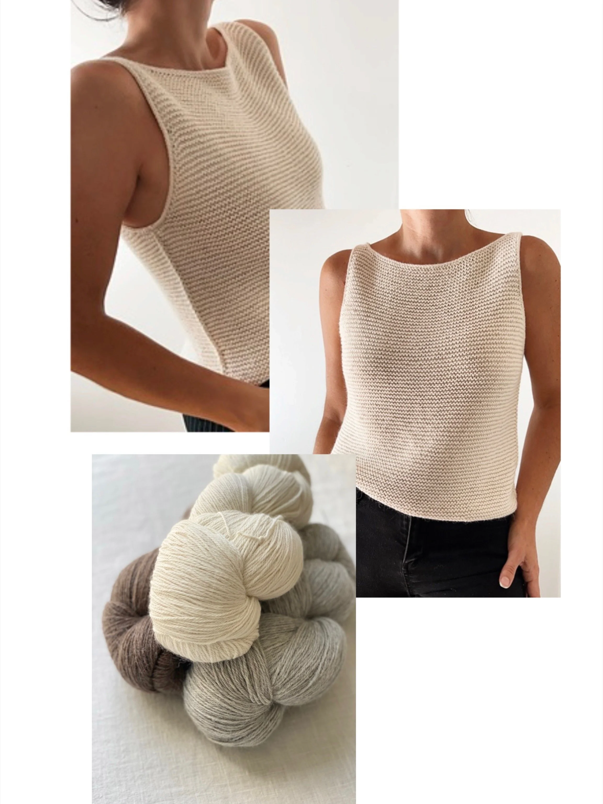 Soho Top is a classic sleeveless summer top with a boatneck style neckline. It is constructed from the top down giving it an advantage for adjusting the length of the body.